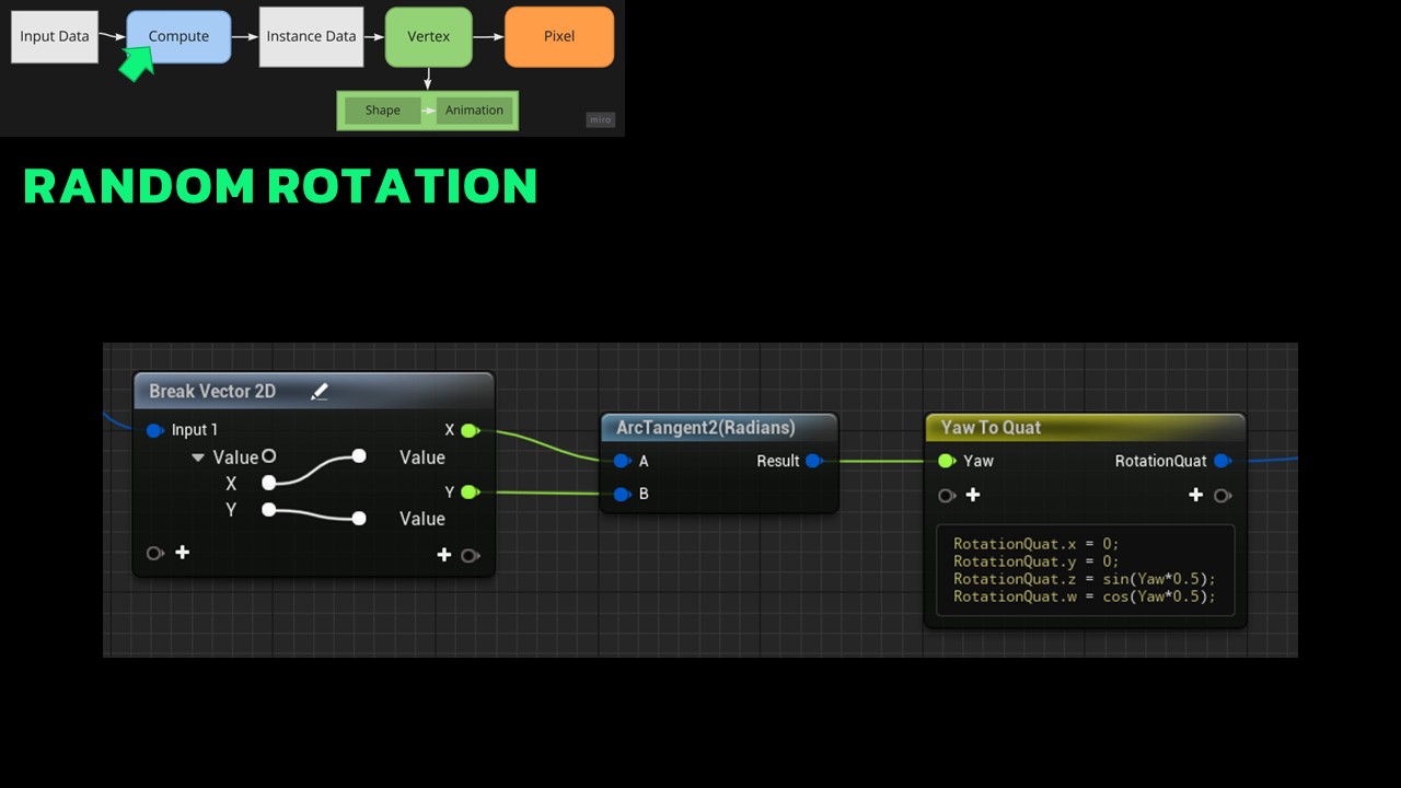 Additionally, I had to calculate random rotations manually. Despite internet and stack overflow warning about adverse effects of editing properties of quaternions, i.e., death, I’m still alive, which proves that they can be safely used for much more efficient calculations.